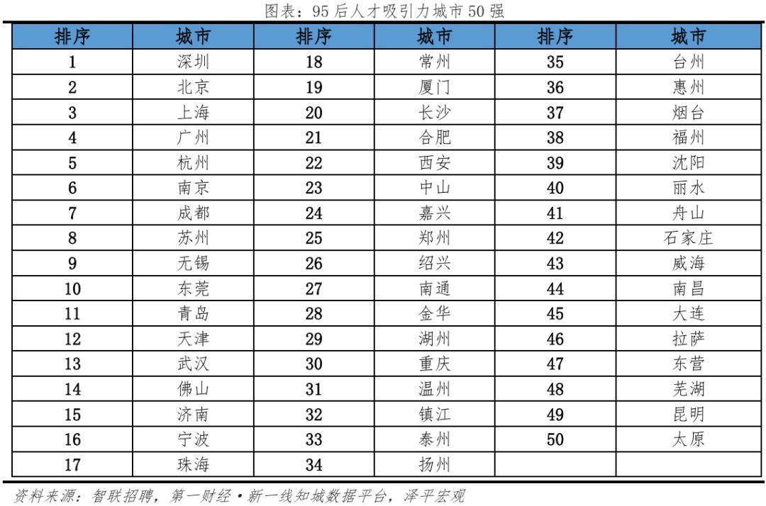 先看深圳,深圳房地产保值率为什么能拿第一?核心优势是“创新红利+年轻人口流入”,深圳是粤港澳大湾区的龙头,是全国创新最活跃的城市,诞生了像华为、腾讯、比亚迪、大疆这样的世界级高科技企业,贡献了万亿级的产值,提供了百万级的高薪就业岗位。而且,深圳人口质量在全国首屈一指,在泽平宏观和智联招聘联合发布的《中国城市95后人才吸引力排名》中,深圳连续两年位居全国榜首,深圳14-35岁青年人口超800万,占全市人口46%,年轻、高学历、高收入的人口结构,带来了源源不断的购房需求。所以,过去十年深圳房地产保值率在全国排第一,就问你服不服?